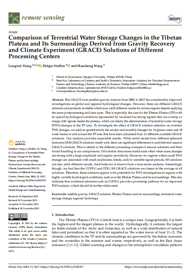beats365官方网站地信系教师相龙伟博士在《REMOTE SENSING》期刊发表题为‘Comparison of Terrestrial Water Storage Changes in the TibetanPlateau and Its Surroundings Derived from Gravity Recoveryand Climate Experiment (GRACE) Solutions of DifferentProcessing Centers’的论文,揭示了不同数据中心解算GRACE卫星重力数据对应青藏高原TWSC结果有差异。