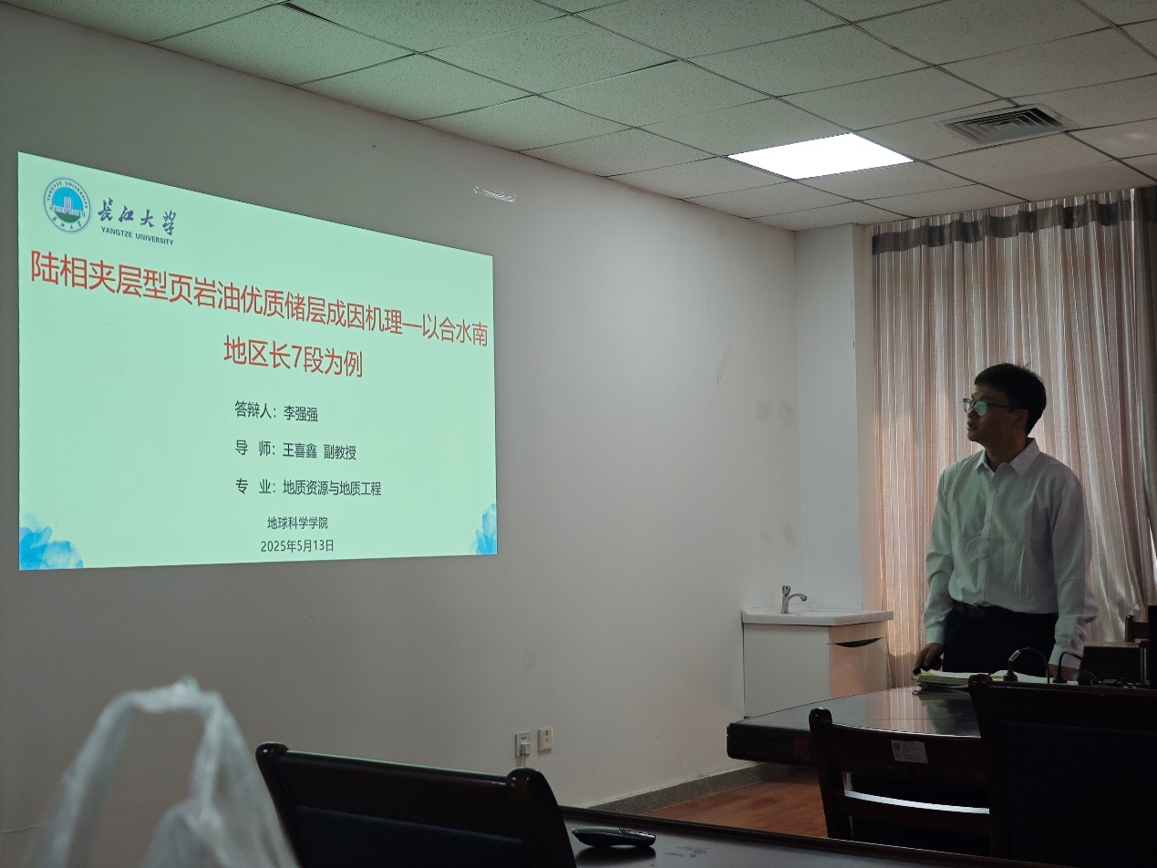 (通讯员 李强强)2025年5月13日下午,beats365官方网站硕士研究生李强强的学位论文答辩在石油科技大楼C307顺利举行。答辩委员会由校内外专家组成,其中中国地质大学(武汉)博士生导师杨锐教授担任主席,beats365冯文杰副教授、徐清海副教授、陈鹏副教授以及陈梅副教授担任委员,朱亚玲讲师担任答辩秘书。