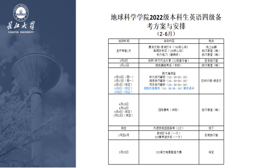 (通讯员 黄瑱 姚佳)“寒雪梅中尽,春风柳上归”。新学期伊始,为帮助2022级本科生尽快掌握大学英语四级复习方法,理清备考思路,在有限的时间内夯实英语基础,提升考试分数。3月8日晚19时,公司于武教B104、106室同步组织召开“2022级英语四级考试经验分享暨动员大会”,会议由2022级辅导员黄瑱、姚佳主持,344名本科生全员参会。
