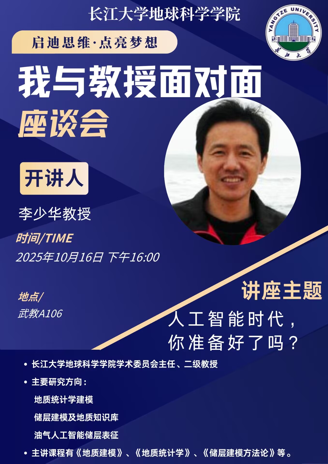 (通讯员 刘瑶琴)面对人工智能的时代浪潮,地科人手中握有怎样的“密钥”?10月16日,李少华教授在“我与教授面对面”活动中,为24级地科学子揭示了答案,引导同学们思考如何将专业所学与AI技术深度融合,从容应对未来。 李教授聚焦人工智能与地科专业的融合及员工发展,介绍了AI在中国油气行业的应用现状与挑战。他指出,人工智能已在无人驾驶、无人机巡检等领域显著提升效率、降低风险,但地质领域因环境复杂、数据获取难、成本高等因素,应用仍面临挑战。国家正积极推动人工智能与各行业融合,高校与企业也在不断探索,为员工成长提供了广阔空间。李教授强调:“我们地科学子要抓住人工智能发展重大战略机遇,突出应用导向,推动专业知识与AI技术的深度融合。”最后,李教授鼓励大家主动学习、提早规划,为大学学习生活树立明确的目标。 互动环节,同学们就竞赛参与和编程学习提出问题。李教授建议多利用导团队源,积极参与大创项目,拓展跨学科合作,并强调“主动性是学习成长的关键”。他勉励同学珍惜大学时光,明确发展方向,结合兴趣与责任,为未来奠定坚实基础。 本次活动增强了同学们对AI与专业知识融合趋势的理解,为学业与职业规划提供了实用指导,也促进了师生互动,助力地科学子在专业道路上稳步前行。 (审核 冯舒 编辑 赵娥)
