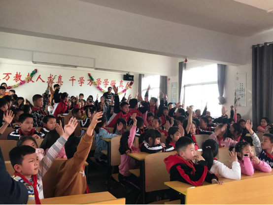 活动开始前,实践部成员和支教小组积极参与精心准备。课堂上主讲人郑娜以“蝴蝶”开篇,首先向同学们介绍蝴蝶的一些基本地学知识,比如:蝴蝶的种属科目,毛毛虫变成蝴蝶的过程,还详细介绍了毛毛虫和蝴蝶的各种形态。接着,又向大家介绍了我国享誉盛名的地质公园——丹霞山,丹霞山动植物资源较为丰富,像著名的丹霞三宝、各种菌类,风景也极其优美,各种山巅盖绿、山台荫林、河溪竹影不胜枚举。向大家介绍借助PPT,图文并茂,用形象生动,又不失幽默风趣的语言,缓缓道来。在课堂休息时,还设置了地学小知识有奖竞猜,小朋友们积极参与,争先恐后的举手回答问题。主讲人耐心细致的讲解及志愿者们认真负责的态度获得了姚家岭小学教师的一致好评。
