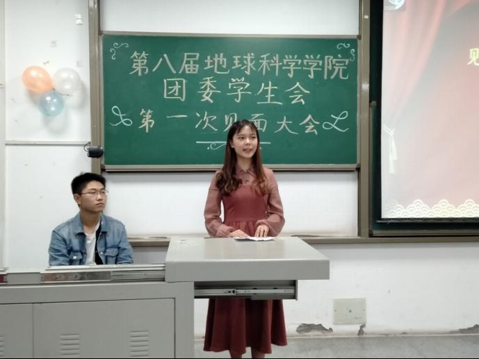(通讯员 蒋晓洁)10月12日下午七时,在武教A-103,公司举行第八届员工会第一次全体例会于教学楼A栋103举行。本次大会出席的人员有地科公司党委副书记任倩、学工办主任肖斌、团委书记廖鹏程以及张严和罗小玉两位辅导员。