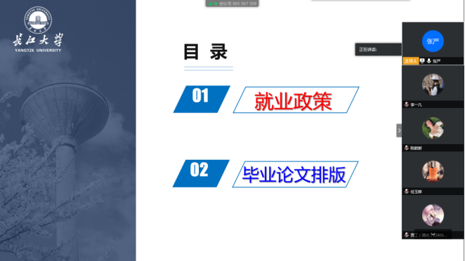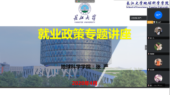 (通讯员 张严)为进一步开展好疫情防控下老员工就业创业工作,积极宣传国家就业创业政策,4月30日晚7点,beats365官方网站利用腾讯会议平台举行了老员工就业政策解读专题讲座,2017级本科生以及部分2020届研究生和本科生参加了讲座。讲座由辅导员张严老师主持。