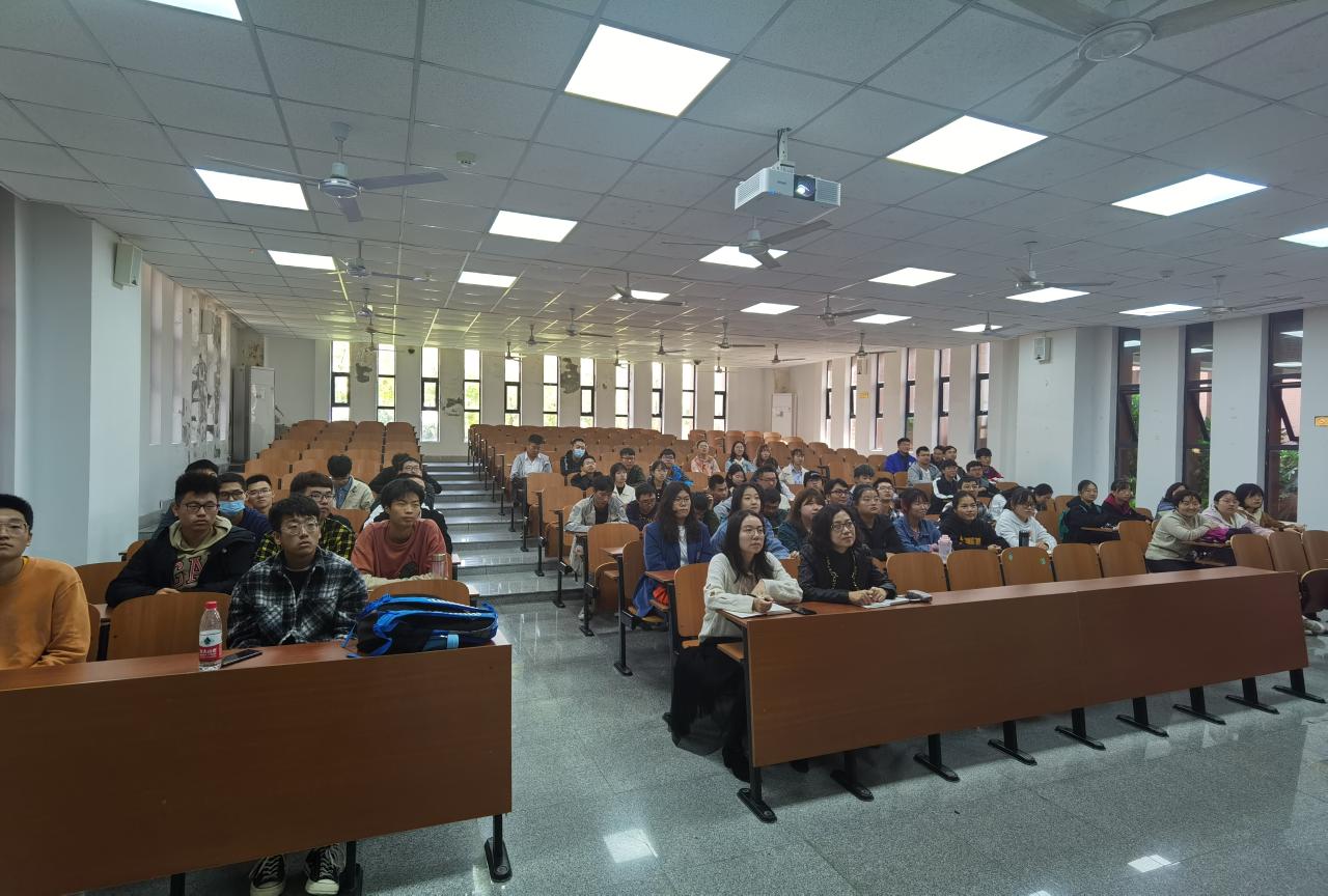 林竑川首先用在部队训练的视频和照片为大家展现了训练场景。每天的训练长达12小时,从到泥地穿越铁丝网爬行,到负重70公斤跑步拉练10公里,无论严寒或者酷暑,无论台风或者暴晒,训练依旧照常进行,其强度之大、严厉至极让全场同学为之感叹。随后,他以军旅生活中的几个小故事为例,讲述了在部队中生活、学习与工作,并强调了纪律意识、集体意识和团队意识的重要性。最后,他结合新生军训,希望在座的同学能将军训期间养成的良好作息习惯和坚强意志延续下去,以自律、自觉和自强渡过老员工活。