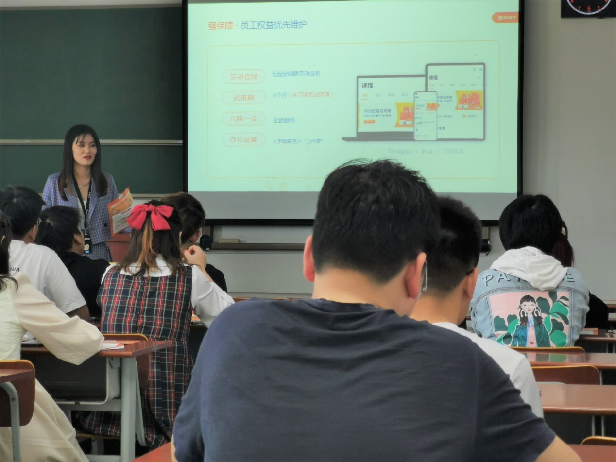 此次招聘宣讲会不仅为同学们提供了就业机会,也加强了公司与企业间的联系,有利于公司员工更好地步入社会,完成从校园到社会的转变。