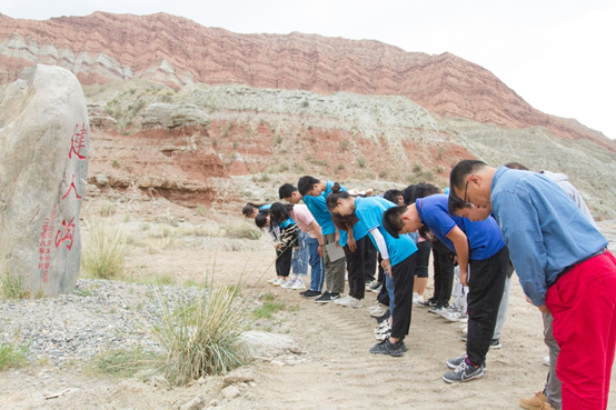 首先,我们到达了第一站——依奇克里克油田。它位于新疆南部,塔里木盆地北缘、天山南麓大涝坝区域。1958年,这里建成新中国在塔里木盆地的首个油田,是塔里木盆地石油勘探史上的第一座里程碑。1987年,依奇克里克成为中国第一个废弃的整装油田开发基地,累计生产原油120万余吨。依奇克里克从一片荒芜到可以容纳3万多人的小镇,是我们的石油先辈就地取材,依靠着报效祖国的一腔热血和不惧困难的精神,一铁锹、一铁锹建设起来的。他们在野外勘探难度极大,工作任务繁重的情况下,历经千辛万苦,克服重重困难,终于成功发现地下油气藏,开采出了宝贵的油气资源。老一辈石油人的艰苦奋斗、拼搏奉献、不惧困难,愿在艰苦地区扎根,愿为祖国石油献身的精神,既为我国的油气勘探工作积累了丰富的经验,更为后人留下了一笔宝贵的精神财富,令全体队员动容、获益良多。