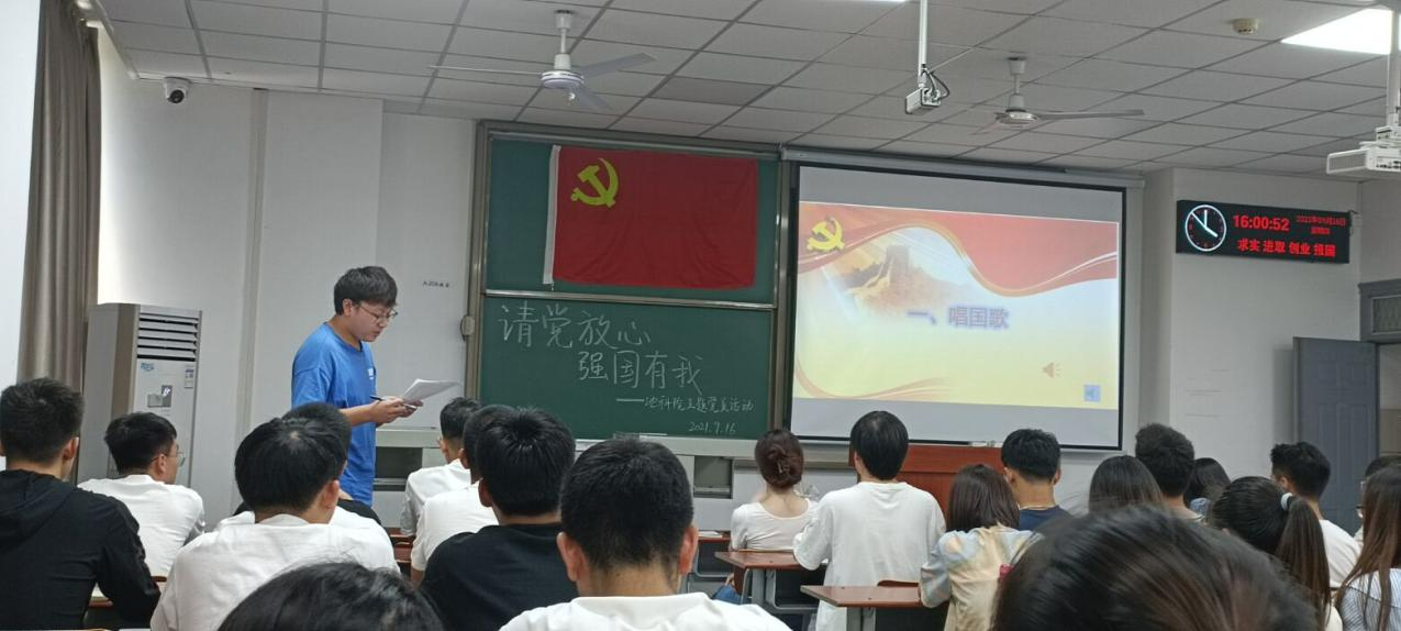 会上支部全体党员共同颂唱国歌,重温誓词。集体诵读学习了中国共产党章程第十、十一章的内容,观看学习了《中国共产党简史》的内容,并学习了习近平主席在中青年干部培训班开班式上的重要讲话。