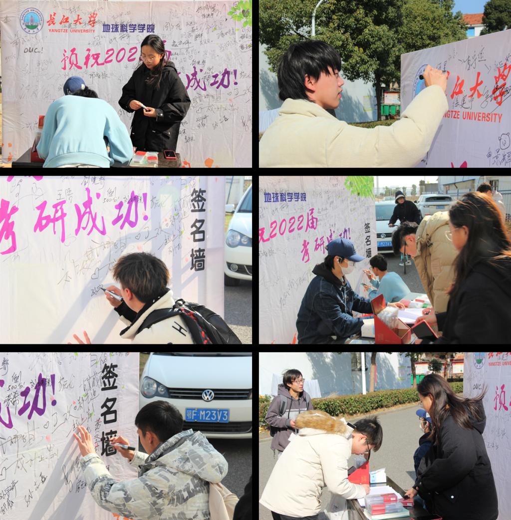 12月17日,公司在华林公寓9栋楼下设立考研礼包领取点,并精心布置了一面“考研签名墙”。现场,同学们收到礼物后,激动地在签名墙上签下自己的名字。“签名墙”布置上去不到一天的时间,就被众多鼓励、温暖的祝福语覆盖上,“一起上岸”“一战成硕”等等。在场同学表示,这上面的祝福有对自己的,当然也有对一同坚持奋斗的“战友们”的,大家加油!