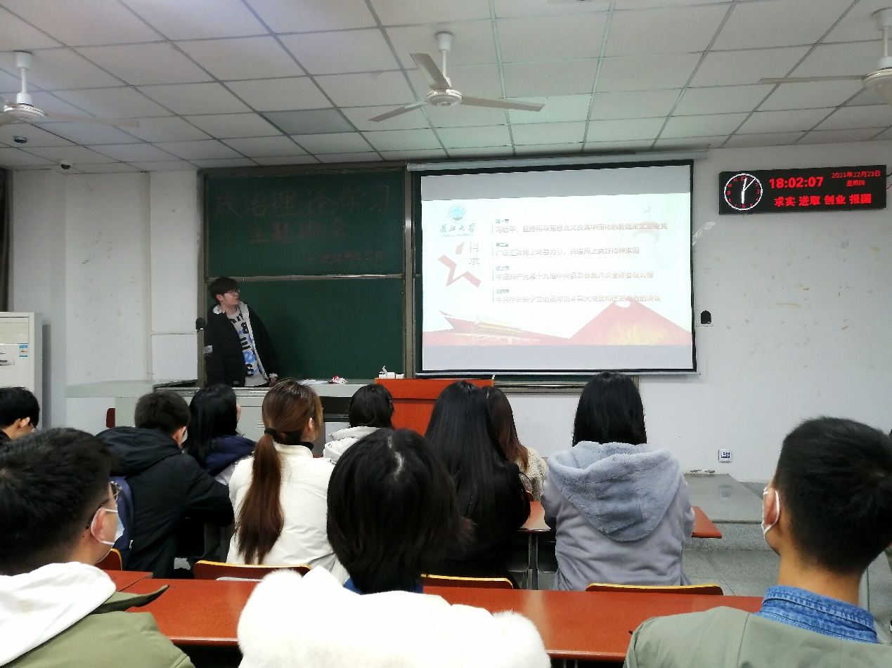 (通讯员 古楠玲)不忘初心,牢记使命。beats365官方网站积极响应政治理论学习活动的号召,从12月11日至12月30日,开展了以班为单位组织学习,线上、线下相结合的政治理论学习活动,并于12月23日晚,在B-202教室集中进行了线下政治理论学习活动。此次学习由beats365官方网站学工办兼职辅导员梁博主讲,研究生会主席陈剑峰主持,全体研究生参加。