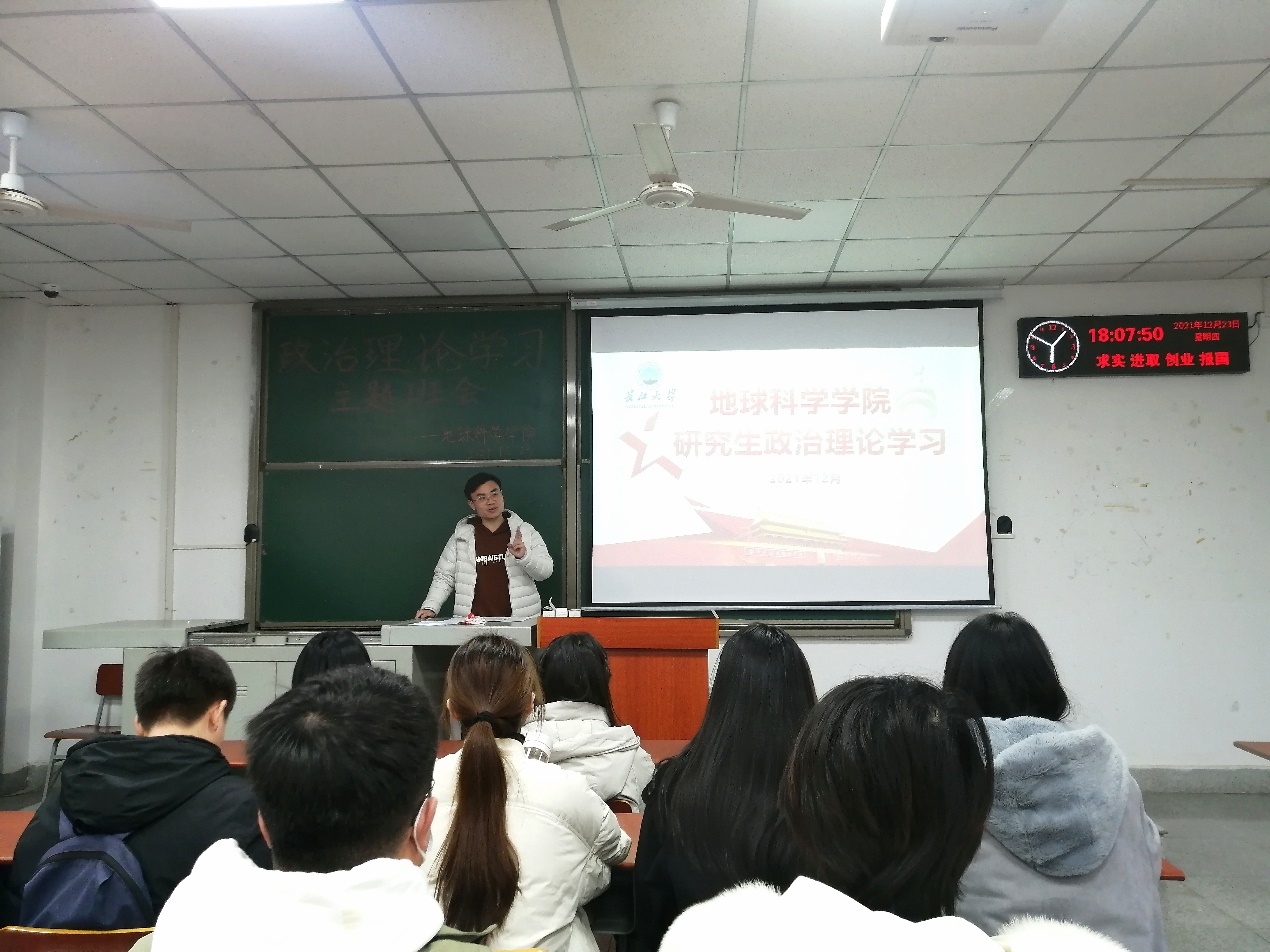 其次,梁博老师给同学们讲解政治理论知识。他以习近平总书记“坚持用马克思主义及其中国化创新理论武装全党”的话语为始,不断引导大家要深刻领悟习近平总书记关于政治理论学习教育的指示精神和深刻内涵。要全身心投入,真正做到学有所思、学有所悟、学有所得。并结合党史、新中国史、改革开放史、社会主义发展史学习了伟大的马克思主义精神。激发研究生学习积极性,筑牢信仰之基,补足精神之“钙”。