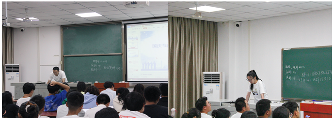 接着是“防疫安全”,临近国庆,辅导员强调疫情防控不能放松,全体员工非必要不出校门,出校门要书面请假,对新到校员工,必须在宿舍“居家观察”并坚持“7天5检”。第三部分是“防溺水”,因为校区靠近水源,辅导员讲解了四个溺水案例,希望大家引以为戒,务必做好安全防护。