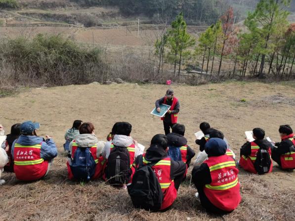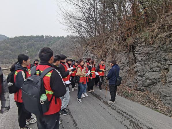 2月13日,公司20级师生抵达荆州松滋刘家场镇进行为期四周的综合地质实习。同学们每天分小组出发,在老师的指导下,学习野外地层地貌的观察及描述。经过近一个月的努力,大家利用测量绳、罗盘等工具,通力协作完成了对于田州山附近地层的勘测与绘制。