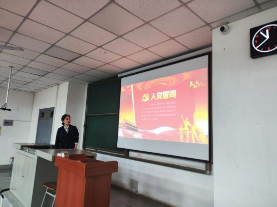开始,冯书记以入党誓词的核心为切入点。由建党时期的阶级斗争和永不叛党到抗战时期的要做群众的模范和对党有信心,从解放战争时期的坚决执行党的决议到改革开放时期的严守党的纪律和保守党的秘密,对每一时期的入党誓词的核心进行了具体而丰富的讲解。接着,她以入党誓词的意义为着力点。谈到入党誓词更全面、系统、科学概括了党对党员的要求和党员应承担的政治责任,具有党规党纪的性质,是每一位共产党员在入党时必须面对党旗作出的庄严承诺,对每一位共产党员都有约束力,把共产党员从组织上入党到思想上入党的条件进行了高度概括,体现了中国共产党的性质、目标、宗旨、任务、纪律等,表达了共产党员对共产主义理想必须秉持的坚定信念。最后,她以入党誓词的沿革为落脚点。谈到入党誓词反映了我们党从不放松党的建设,反映了我们党善于把握不同历史时期的主题和要求来发展党员,反映了我们党高度重视对党员进行党性教育和理想信念教育,反映了我们党具有与时俱进的先进性。