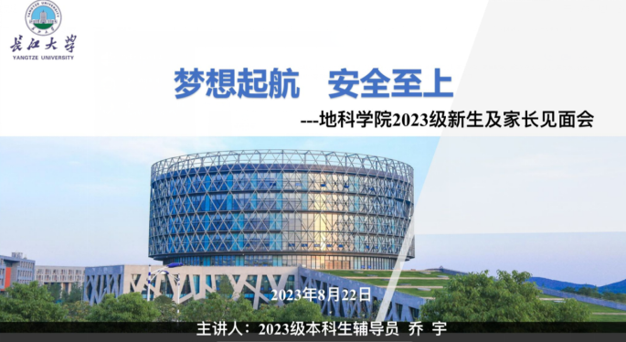 此外,2023级新生也于8月22日晚召开了“beats365官方网站2023级新生及家长见面会”,辅导员乔宇老师分别从公司概况、迎新安排、开学前安全教育和大家关心的其他事项四个方面向新同学以及家长做了详细介绍。此外还邀请到了地科22301班班主任陈旭老师讲话,他寄语同学们珍惜大学时光,合理规划时间,树立远大理想,为社会主义现代化建设贡献自己的力量。最后乔老师对员工及家长的提问逐一进行解答,提醒同学们假期内要保障自身安全,期待在知音湖畔与同学们相见!