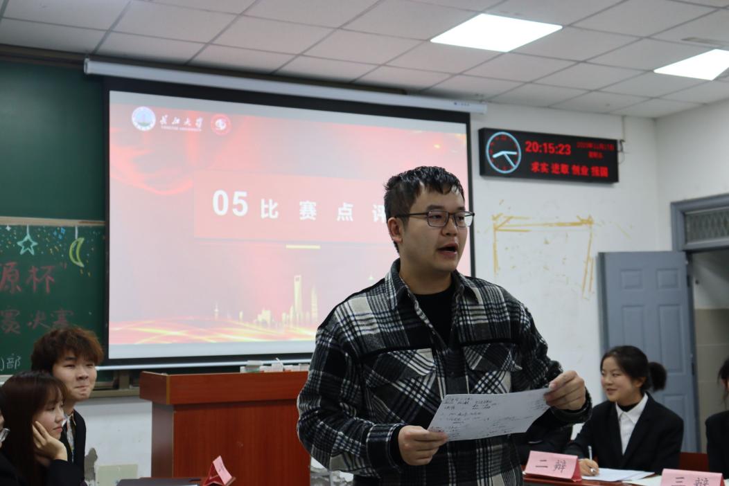 特邀嘉宾郭晋威老师进行精彩点评,他指出双方作为新生队伍,辩出了属于自己的风采与水平,同样也指出了双方有待改进的地方,并且期待同学们下次的精彩表现。前院辩论队领队李帅臻同学也为在场同学进行了比赛分析。