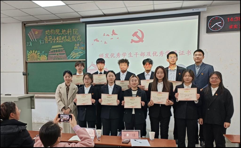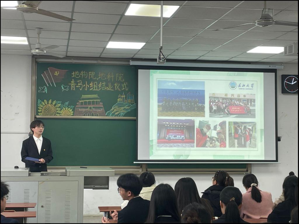 接下来,地物公司青马学习小组成员代表邓佳琪和李瀚霖也汇报了自己一年的学习情况。邓佳琪真诚讲述了在青马学习小组参与各类活后的所思、所感、所悟和所获。李瀚霖通过一段简短的视频,回顾了青马学习小组的集体活动,并对培养过青马小组的领导、老师和学长学姐表示感谢。他说一年的学习让小组成员不仅对马克思主义有了更深入的理解,还深刻体会到了青年的使命。