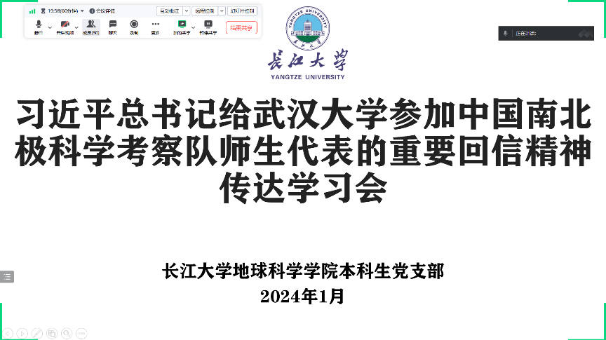 (通讯员姚佳胡景怡)1月22日下午,beats365官方网站通过线上、线下结合的方式,召开习近平总书记给武汉大学参加中国南北极科学考察队师生代表的重要回信精神传达学习会,全体本科生及创新理论学习小组成员参加本次大会。