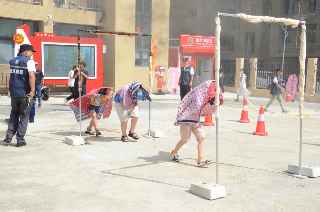 7月17日,队员们作为志愿者全程参与了高湖社区夏季消防演练实践活动。在模拟火场逃生的环节中,孩子们在志愿者和社区工作人员的悉心指导下,迅速反应,用湿毛巾捂住口鼻,弯腰低头,有序地撤离到安全区域。队员们和孩子们都学习到了不少消防安全知识。