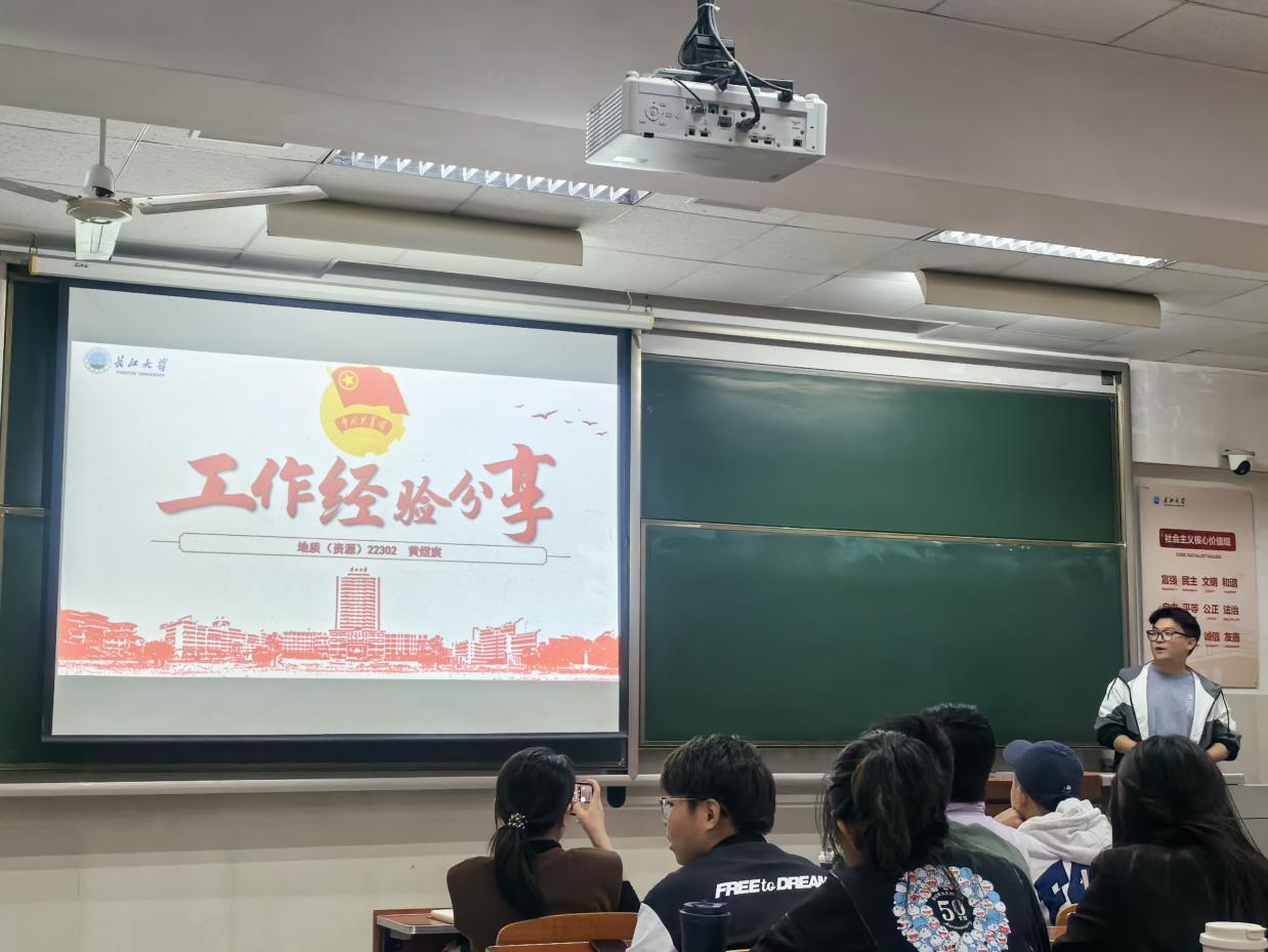 随后,地信(产业)22201班的班长齐缘,分享了自己的工作经验和心得体会,从组织活动、团队协作、沟通技巧等多个方面进行了深入详细的阐述,强调了员工干部拥有乐于奉献精神的重要性。地质(资源)22302班的团支书黄煜宸,讲述了如何调动同学们的积极性,增强班级凝聚力,让大家在学习和生活中相互支持、共同进步,分享了自己在组织大型活动时的策划与执行经验,强调了提前规划和明确分工的重要性。