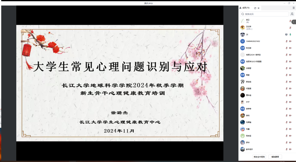 (通讯员 郭禹 审核 王红桥)2024年11月19日19:00,公司特邀心理健康中心徐潞杰老师主讲新生心理骨干教育培训,东校区135名本科生在12教104,武汉校区70名研究生心理骨干通过腾讯会议,共同参与学习。