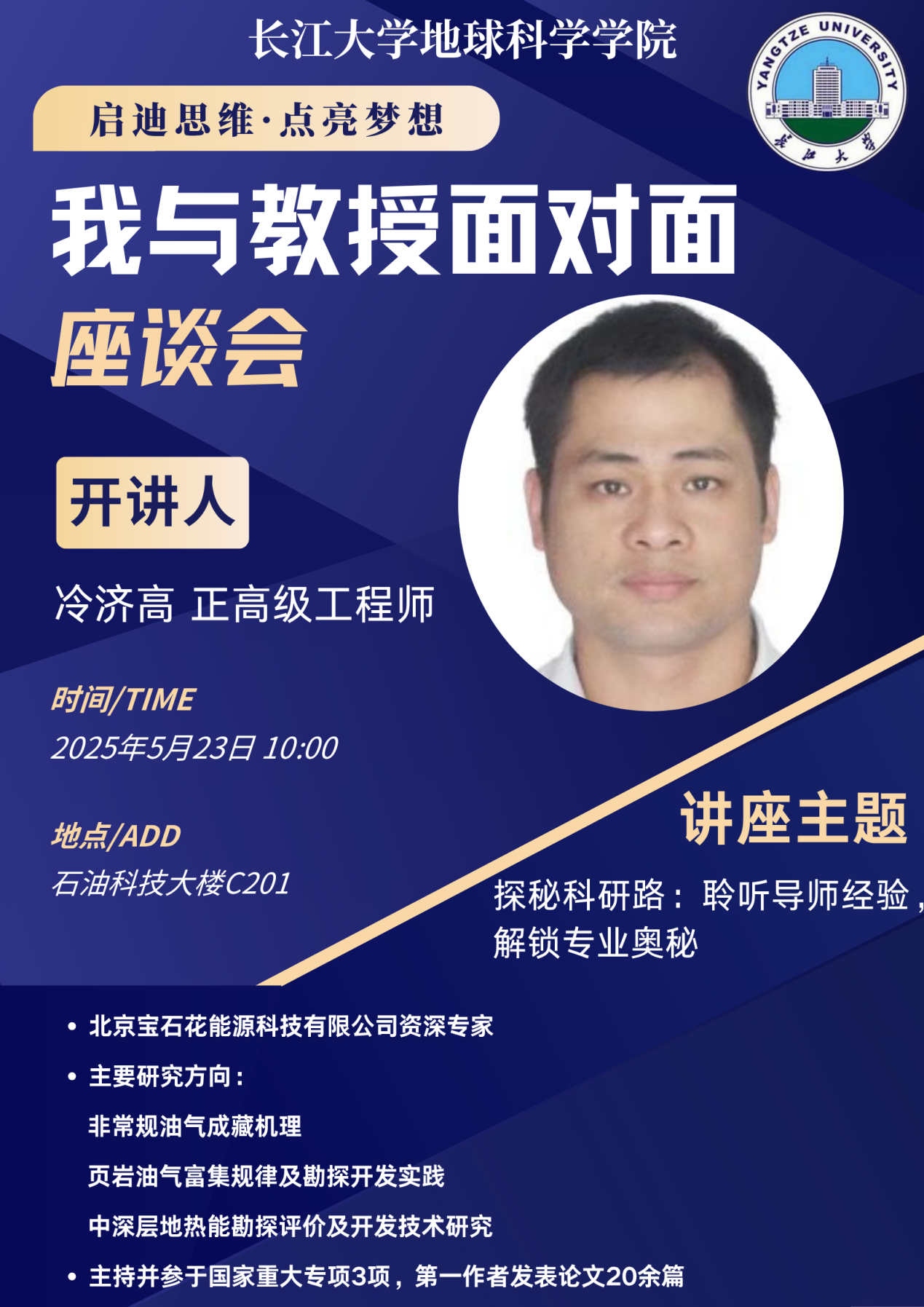 在互动环节,资工22301班侯宝怡,地质工程22201班郭浩和地质工程22201班杨振烨分别围绕“怎么有效进行考研备考”、“关于考研择校有什么建议”、“国企和私企就业的区别”等问题踊跃提问。冷教授黄老师就这些问题,为同学们一一解答,为大家提供了指导性建议,肯定了大家对于个人前景的深度思考。