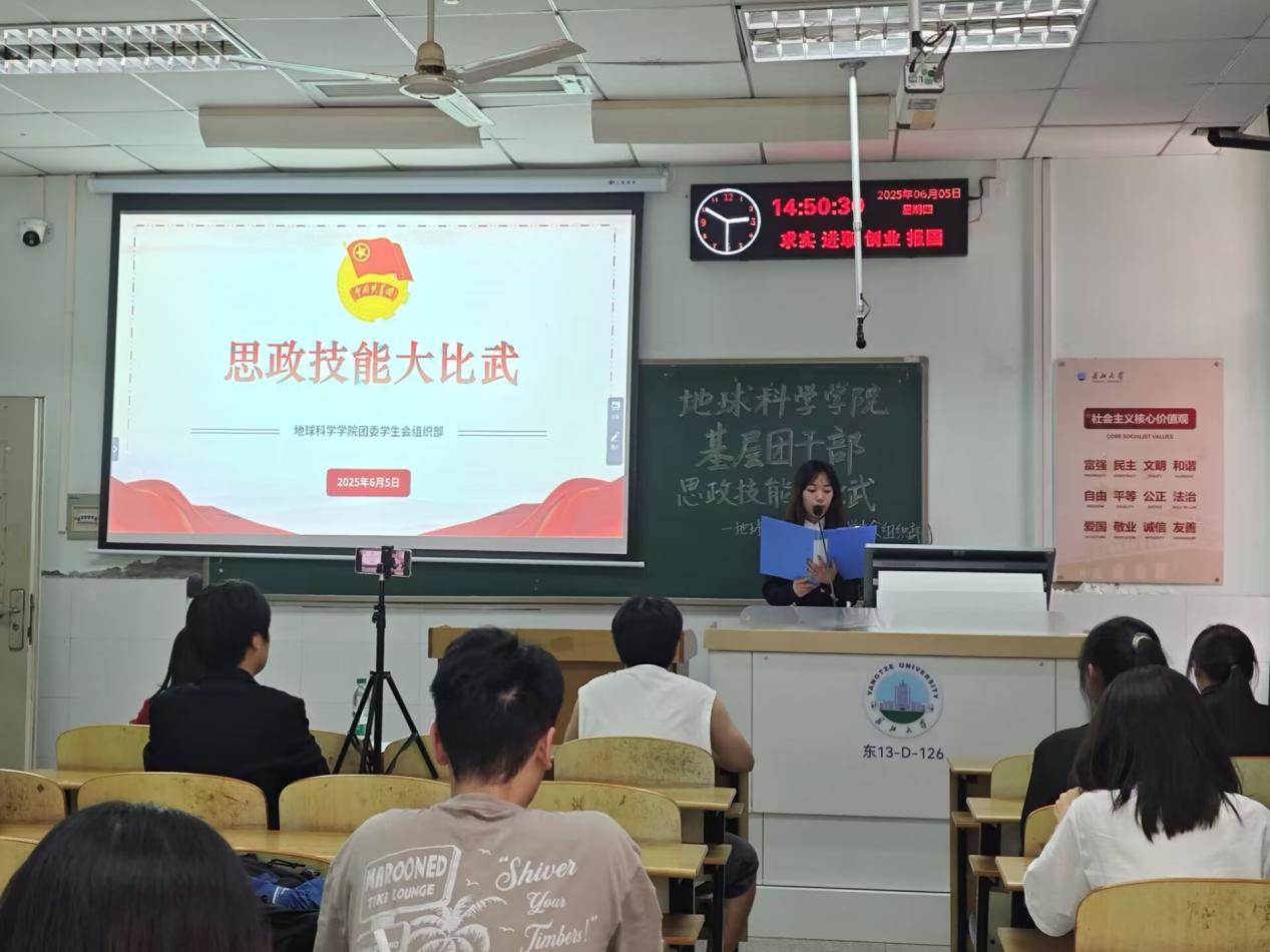 比赛分为两个环节。第一个环节是35分钟的笔试,内容重点考察了习近平新时代中国特色社会主义思想、习近平总书记关于青年工作的重要论述、党的二十大和“两会”精神、十八大以来党和国家事业取得的历史性成就、发生的历史性变革、党史和团的基本理论知识及业务素养等党团理论知识与时政热点。第二个环节是5分钟的限时答辩,参赛选手需展示一节主题团课。这一环节将比赛推向高潮,它不仅要求选手结合实际工作,还要展示团支部建设的创新思维。在展示过程中,有参赛选手以“载人航天精神”为主题,从“苦中作乐,以苦为舟”的奋斗内涵出发,到“功成不必在我,功成必定有我”的集体胸怀,深入剖析了中国航天事业的精神密码。选手们通过回顾神舟、嫦娥团队的辉煌成就,探讨了新时代青年如何传承航天精神,在各自的领域攻坚。还有选手以“钻探中国梦想,锤炼时代担当”为主题,立足于地质专业特色,紧扣习近平总书记“能源的饭碗必须端在自己手里”的重要指示,从中国式现代化的地质根基,到AI找油、深地工程等科技突破,再到老一辈地质人扎根深山的奉献故事,引导大家思考青年一代如何将专业学习与国家战略相结合,践行“敢担当、能吃苦”的使命。