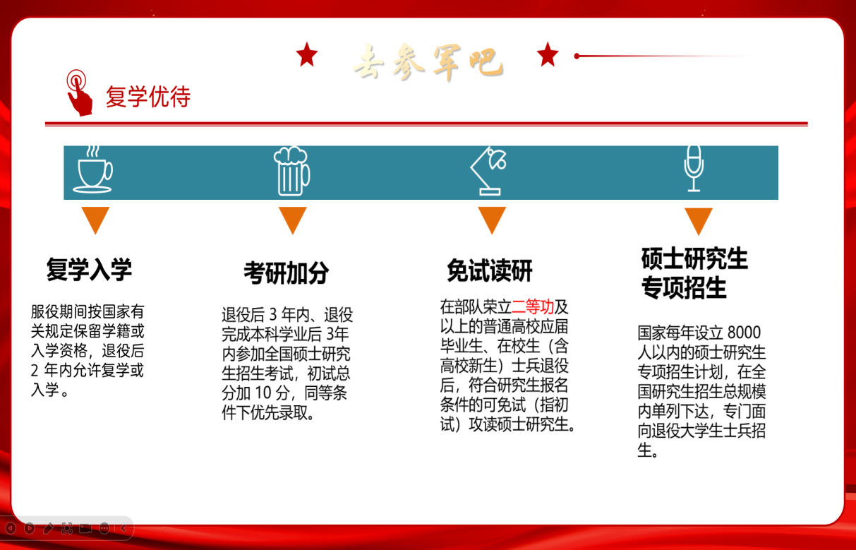本次征兵宣讲会加深了同学们对征兵政策、军营生活的认识,为公司征兵工作的顺利开展奠定了良好基础。截止目前,公司已有5人积极准备参军入伍。
