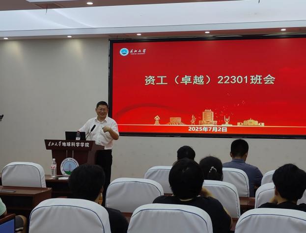班会伊始,朱光有经理就开宗明义地指出:"同学们要牢记,地质人的脚步永远向着远方,但根基必须扎在当下。资源勘查工程是艰苦专业,但更是充满机遇的领域。看到你们这一学期在学业、科研、实践等方面取得的进步,我深感欣慰。"同时强调:"专业素养是立身之本,英语能力是发展之翼,希望同学们继续保持这种全面发展的良好态势。"