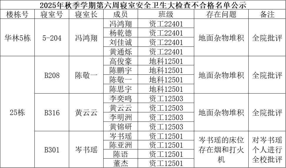 为加强员工宿舍安全管理和文明建设工作,确保员工宿舍安全、整洁、文明、有序,根据公司要求,公司于10月16日开展了第6周员工宿舍自查工作,现将检查情况通报如下