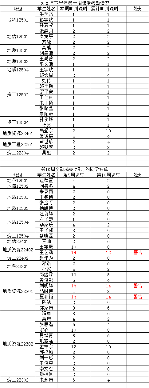 为落实公司关于加强学风建设的相关要求,进一步规范课堂秩序,营造良好的学习氛围,公司持续开展常态化课堂考勤工作。现将第十周考勤情况通报如下: