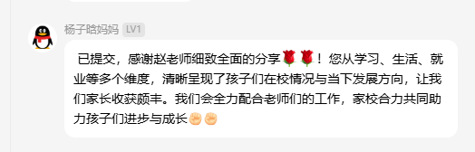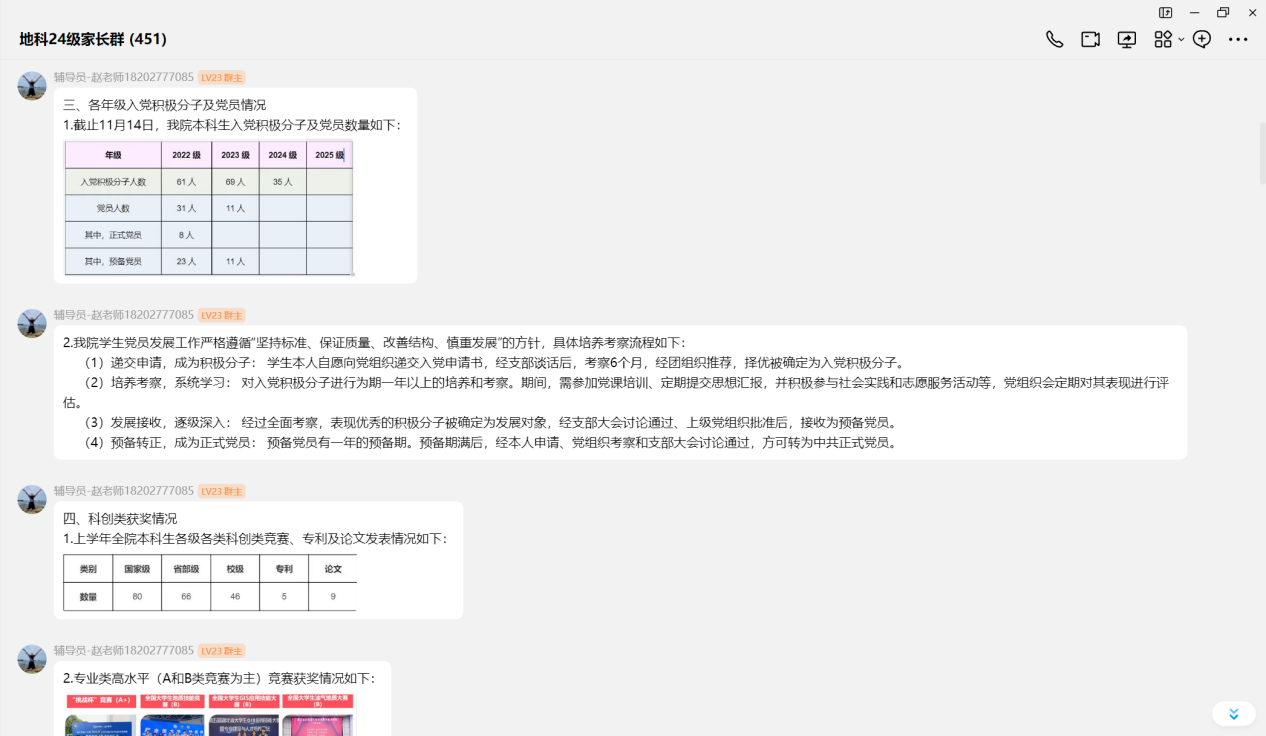 (通讯员 王彩蓓)为进一步加强家校之间的沟通与协作,构建家校共育的桥梁,共同促进员工全面成长与未来发展,11月14日晚8点,公司24级本科生本学期期中线上家长会顺利开展。会议由辅导员赵娥老师主讲,全体24级家长参与。 会议从家长关心的学业成绩、评奖评优、学科竞赛等方面展开,向家长们展示了公司持续强化学风建设,通过课堂考勤与学业帮扶机制关注员工成长,并呼吁家长共同督促员工重视英语四级考试与专业学习。在思想引领与成长支持方面,公司严格规范党员发展流程,并通过心理关怀、宿舍文明建设及丰富多彩的科创、心育活动为员工营造积极健康的成长环境。同时,会议结合近年考研趋势与就业形势,建议家长引导员工尽早明确生涯规划,扎实学业基础,提升综合竞争力。 交流答疑环节,家长们就英语四六级、孩子专业以后的就业方向等问题踊跃提问,赵老师就家长们关心的问题进行了耐心、细致的解答,获得了家长们的一致好评。 此次线上家长会,虽隔屏幕,却未阻隔家校心连心的交流。它不仅让家长们对孩子的在校情况有了更立体的了解,也进一步明确了家校合作发力的方向。我们坚信,唯有家校同心,携手并进,方能共同托举起孩子们更加光明、灿烂的未来! (编辑 郭霖 审核 冯舒)