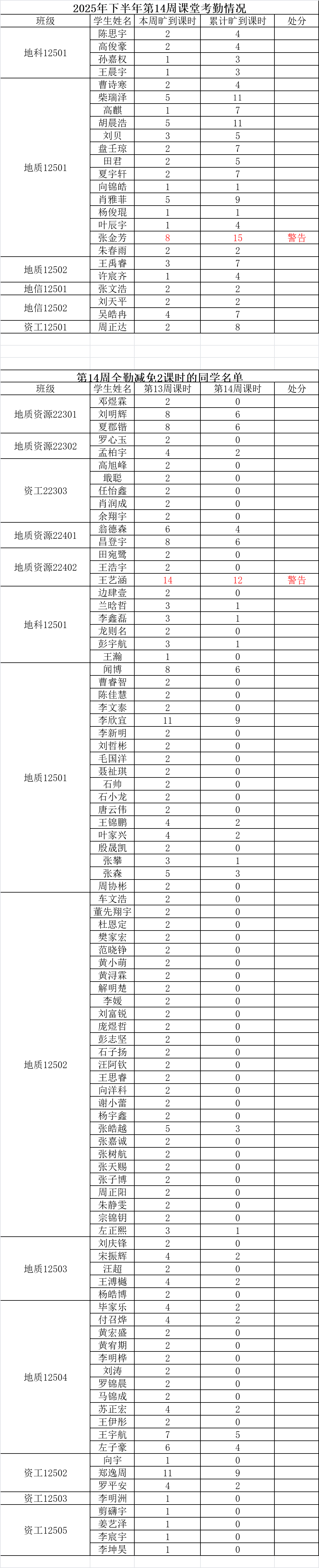 1. 旷课达到12学时,给予警告处分;